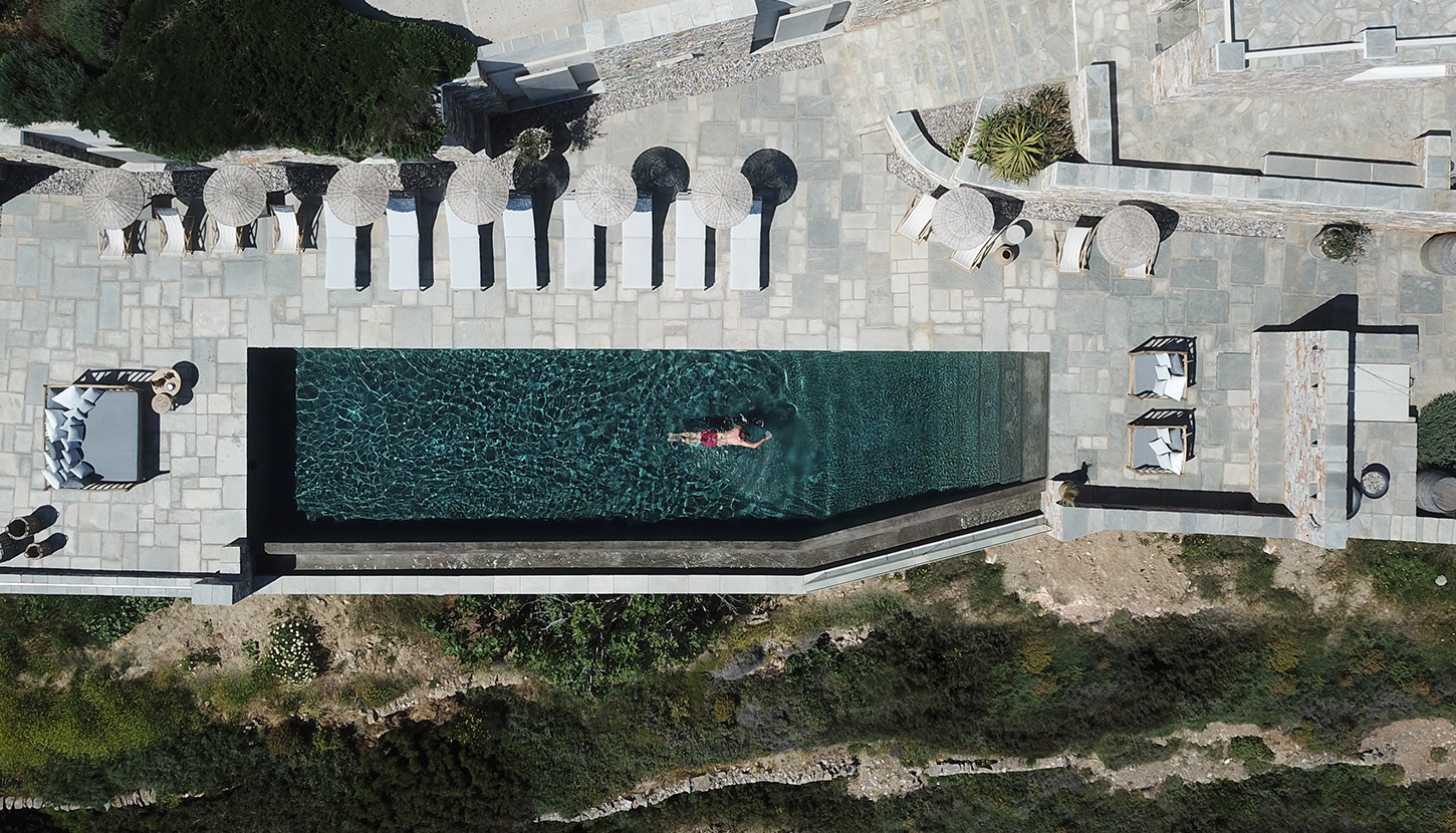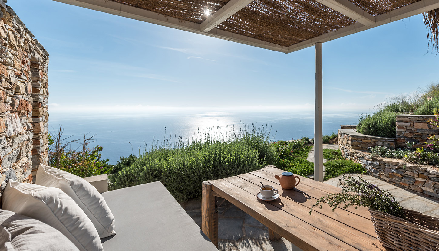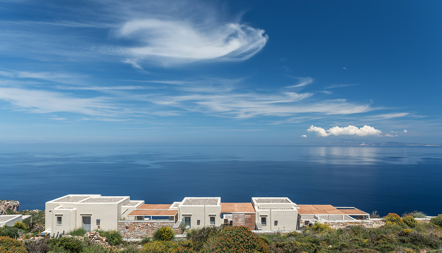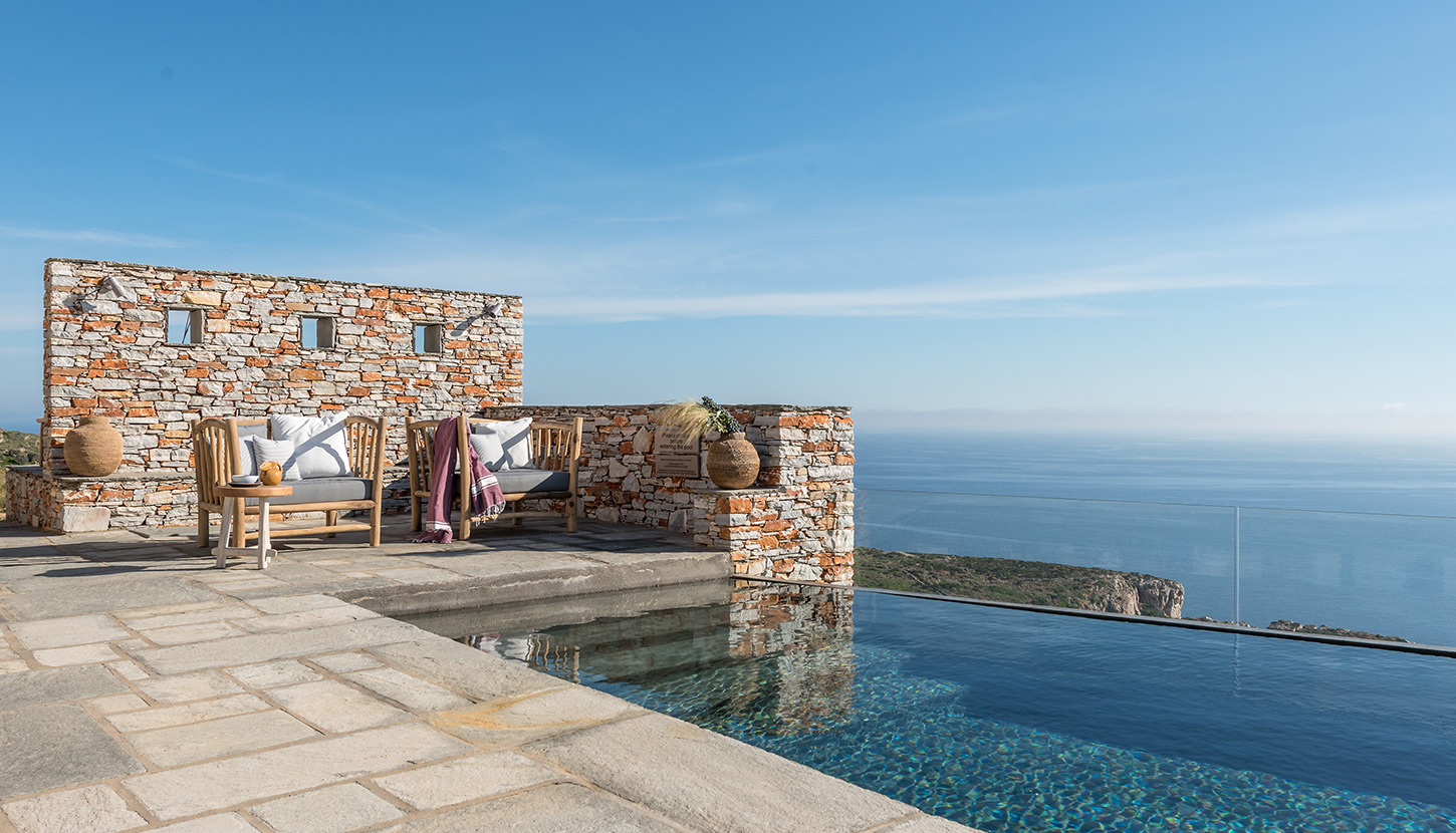 Tucked into the wild beauty of Poulati, VERINA ASTRA occupies a rare vantage point—where rugged cliffs meet the open sea, and nature unfolds in quiet majesty.