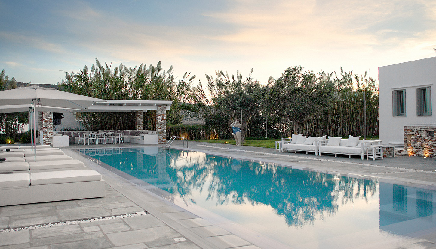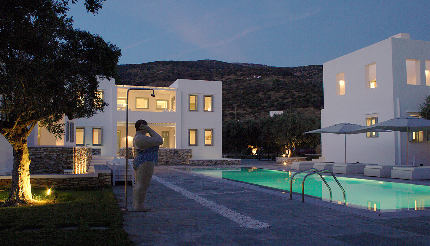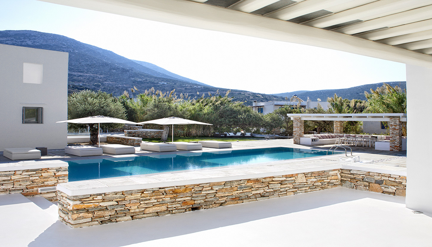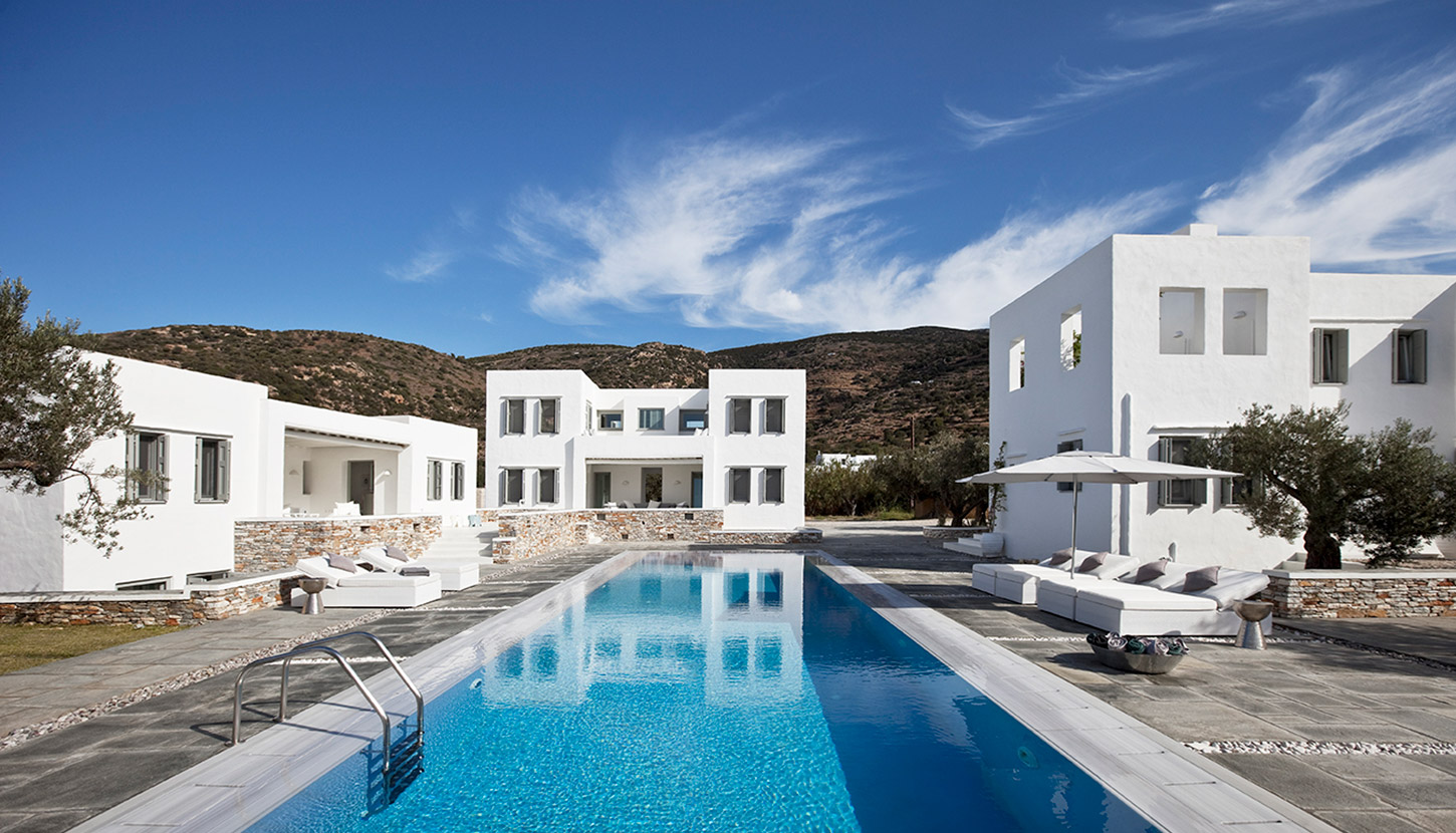 Set along the golden sands of Vathi, VERINA VILLA is a private estate of refined simplicity. Designed for exclusivity and ease, this beachfront retreat includes three standalone buildings arranged around a pool, tennis court, hammam, gym, and serene gardens.
