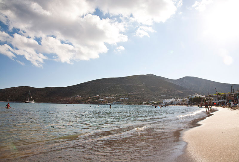 Famous for its natural beauty and the iconic Chrysopigi Monastery, this sandy beach is a true gem of Sifnos. The crystalline waters are perfect for swimming and snorkeling, revealing an underwater wonderland. The rocky cliffs and whitewashed monastery create a striking backdrop, making it a fantastic spot for photography. After exploring the beach, you can visit the monastery or take a short hike to nearby viewpoints for panoramas of the coastline.