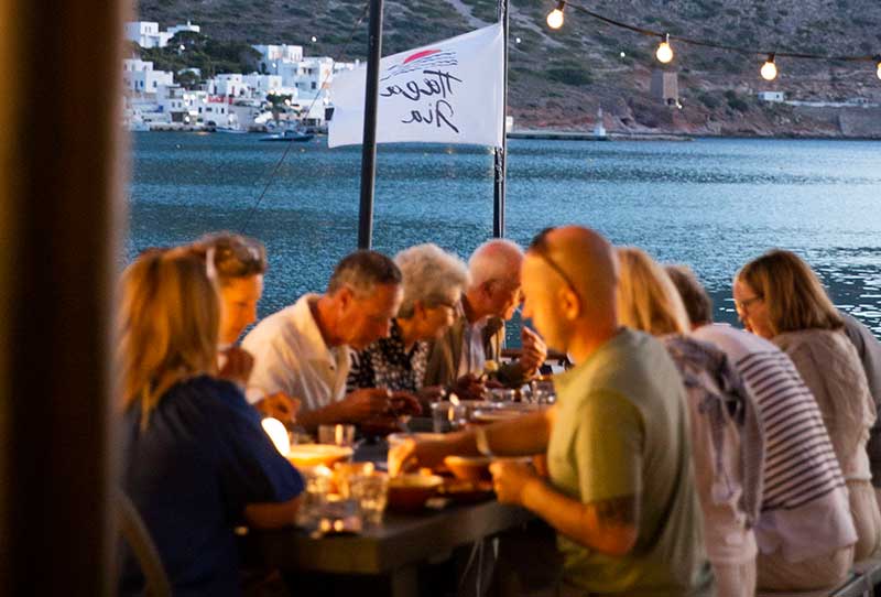 The next evening, guests and friends gathered at Paralia Beach Bar Sifnos in Kamares to indulge in a truly unforgettable Peináo feast prepared by Helena. She shared the inspiration behind her menu—drawing from local ingredients and the timeless wisdom she’s picked up from many yayades (grannies) across Greece.