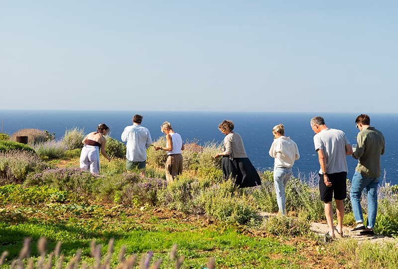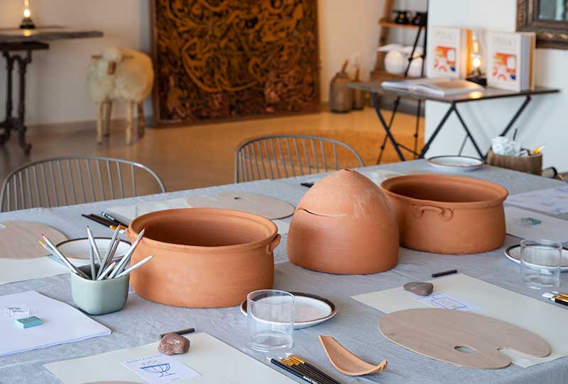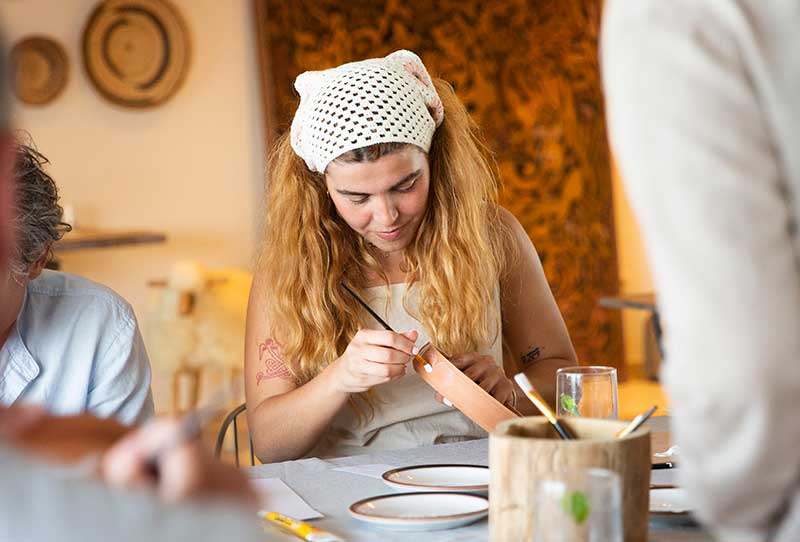 On the first afternoon, participants took a relaxed walk through our bostani garden, which included some light foraging and the chance to connect with one another. Back at Verina Astra, Lex hosted a thought-provoking workshop. Guests were given ceramic pieces—slightly flawed and imperfect—and encouraged to paint them, both as a form of personal expression and as a way to explore the idea of “no waste.” The message? Even objects destined for the bin can be transformed into something beautiful and meaningful. A huge thank you to the Apostolidis Pottery Workshop for generously providing the ceramics.